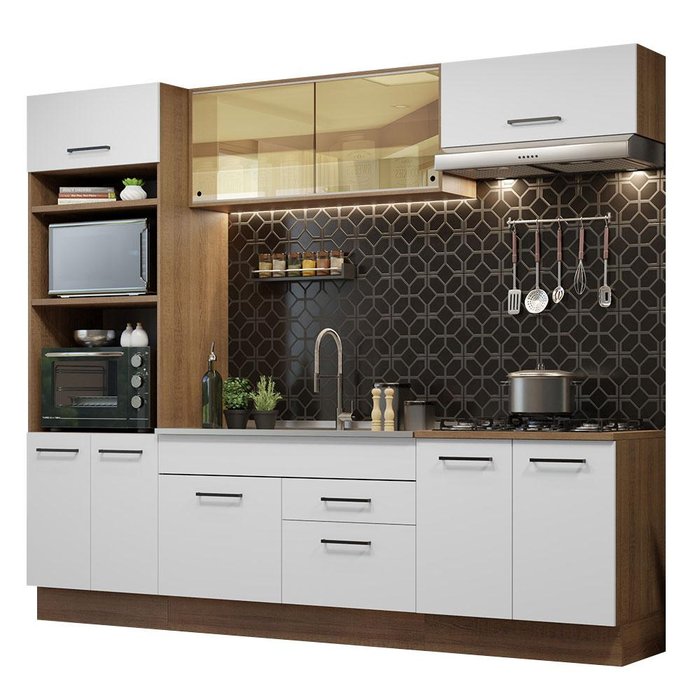 Armário de Cozinha Completa 270cm Rustic Branco Agata Madesa 03