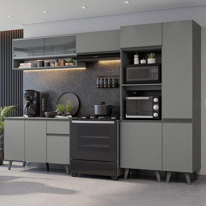 Armário De Cozinha Completa 300cm Cinza Nice Madesa 09 Cinza Cinza