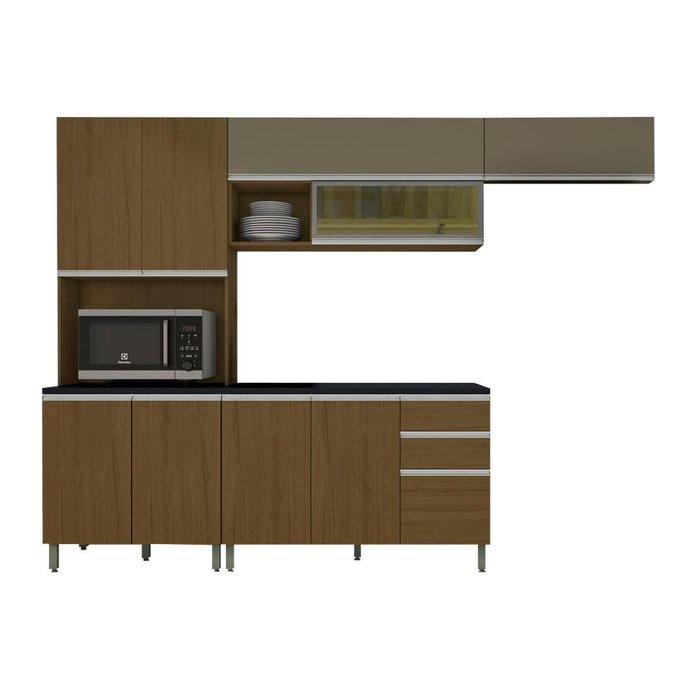 Composta por armários, gavetas, prateleiras, balcão para pia, oferece tudo o que é necessário para ter uma cozinha completa.