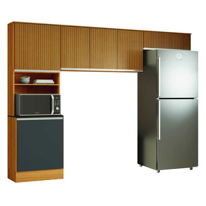 Armário de Cozinha Completa 6 Portas 2 Nichos Paris Madeirado Ripado 3d Grafite Poliman