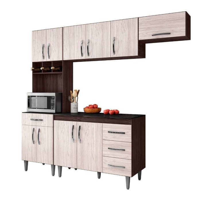 Armário de Cozinha Completa com Tampo 240 Cm Clara Castanho Marrom
