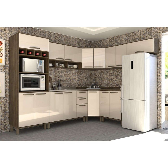 Armário de Cozinha Completa de Canto com 8 Peças Sara Luciane Móveis
