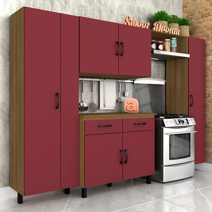 Armário De Cozinha Completa Jade 5 Peças Bor/vinho - Móveis Arapongas Boreal/vinho