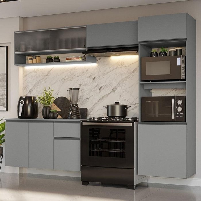 Armário De Cozinha Completa Suspenso 260cm Cinza Nice Madesa 11 Cinza
