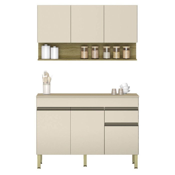 Composta por armários, gavetas, prateleiras, balcão para pia, oferece tudo o que é necessário para ter uma cozinha completa.