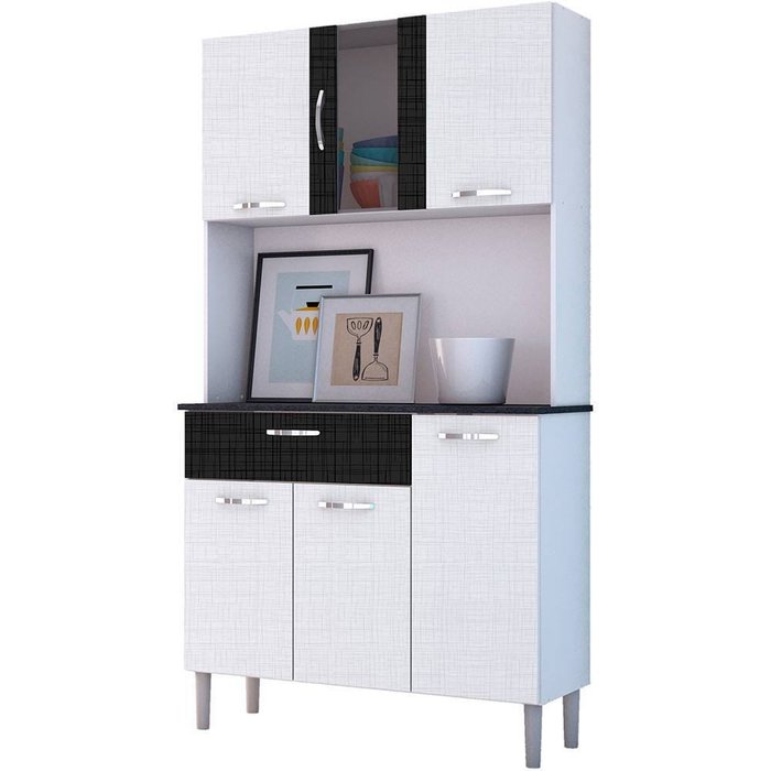 Armário de Cozinha Kits Paraná Kit Pan 6 Portas 1 Gaveta Linho Branco/Preto