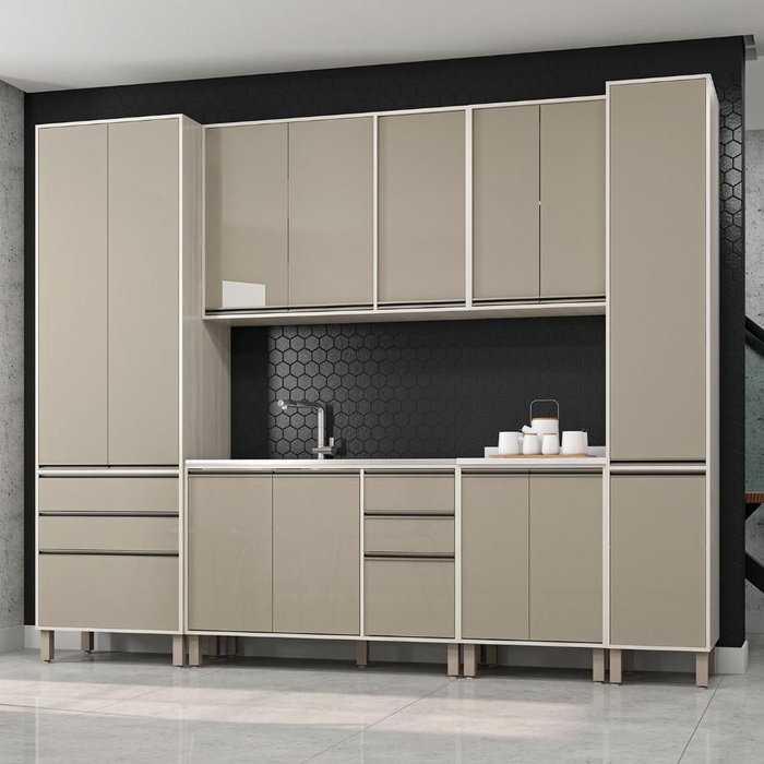 Armário de Cozinha Modulada 6 Peças 290cm Linea C/ Paneleiro Cor:mocca Laca Avelã ou Mocca Laca