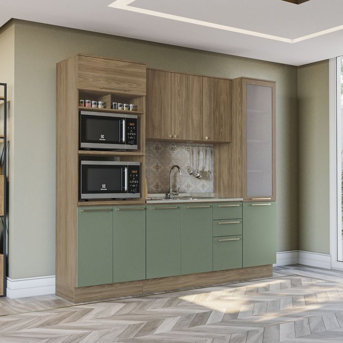 Armário de Cozinha Modulada Completa 04 Peças 2,40m Botanic Kappesberg - Nogueira/verde Oliva