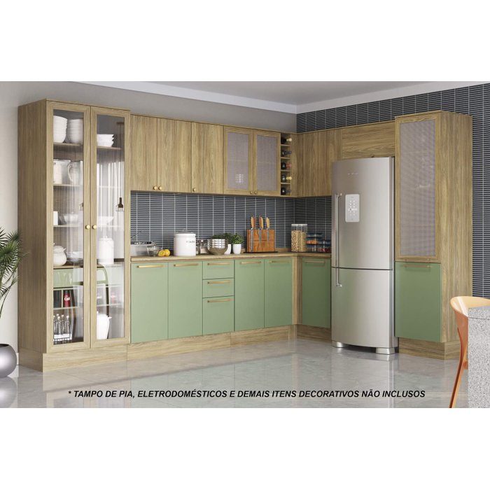 Armário de Cozinha Modulada Completa de Canto 12 Peças 3,39x2,28m 200 Botanic Kappesberg