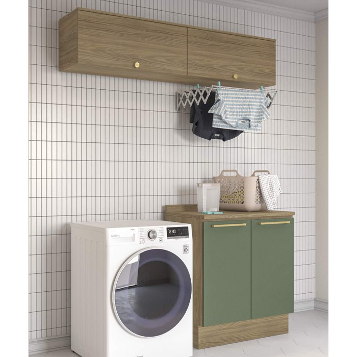 Armário de Cozinha Modulada Completa Reta 4 Peças 1,60m Botanic Kappesberg - Nogueira/verde Oliva