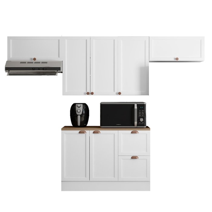 Conteúdo da Embalagem: 1 Balcão 120cm, 1 Aéreo 120cm, 2 Aéreos 80cm, 1 Tampo.