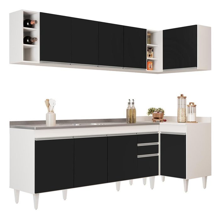 Armário de Cozinha Modulado de Canto Esquerdo 5 Peças Cp54 com Pia Inox Branco-preto - Lumil