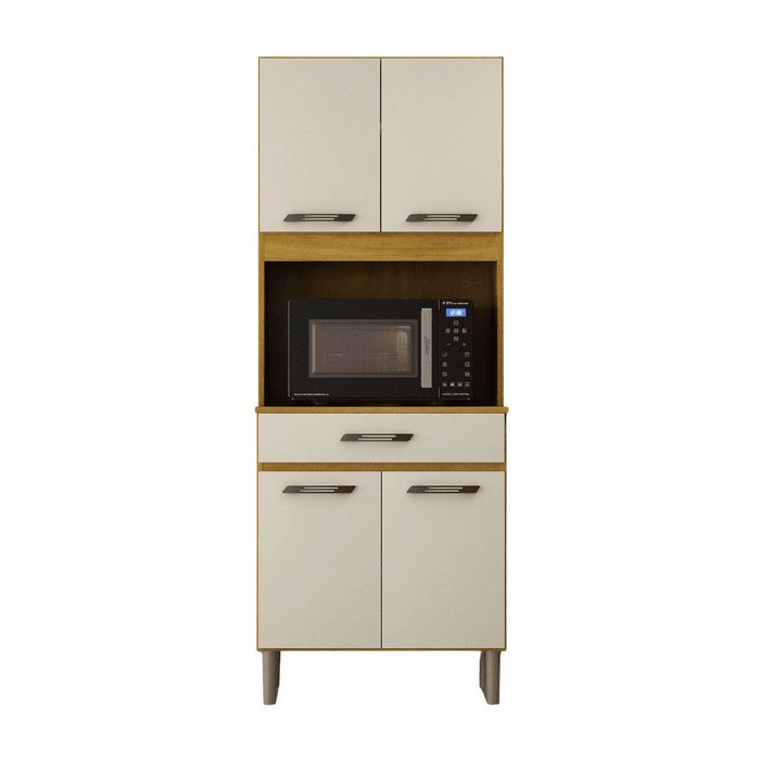 Armário de Cozinha Multiuso 4 Portas Verona com Espaço para Micro-ondas Cinamomo/Off White Acetinado