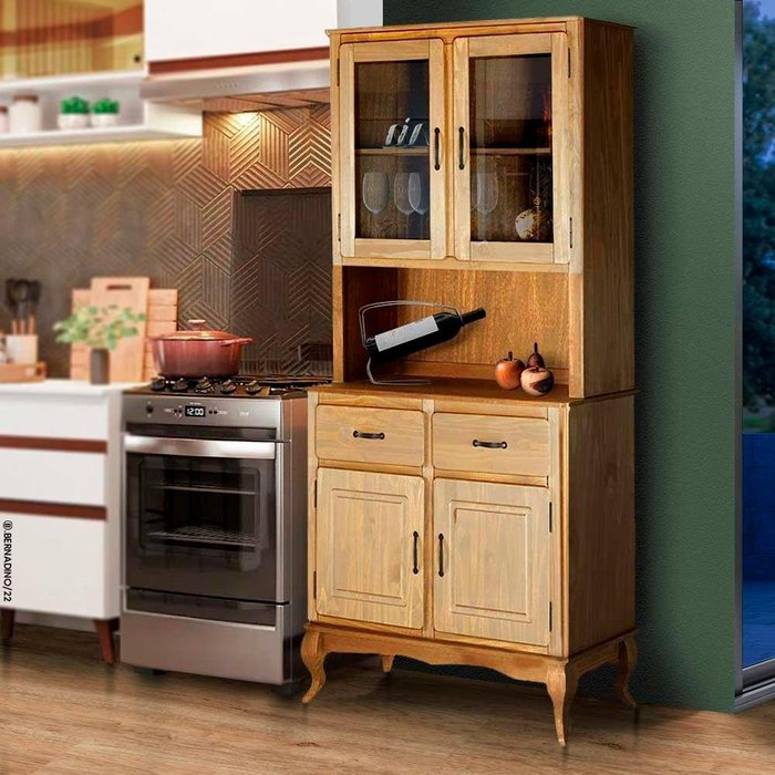 Armário De Cozinha Pequeno Rústico Madeira Maciça 4 Portas Mel Shop JM