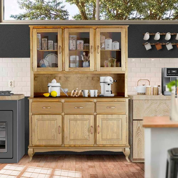 Armário De Cozinha Rústico Madeira Maciça Portas Em Vidro Mel Shop JM