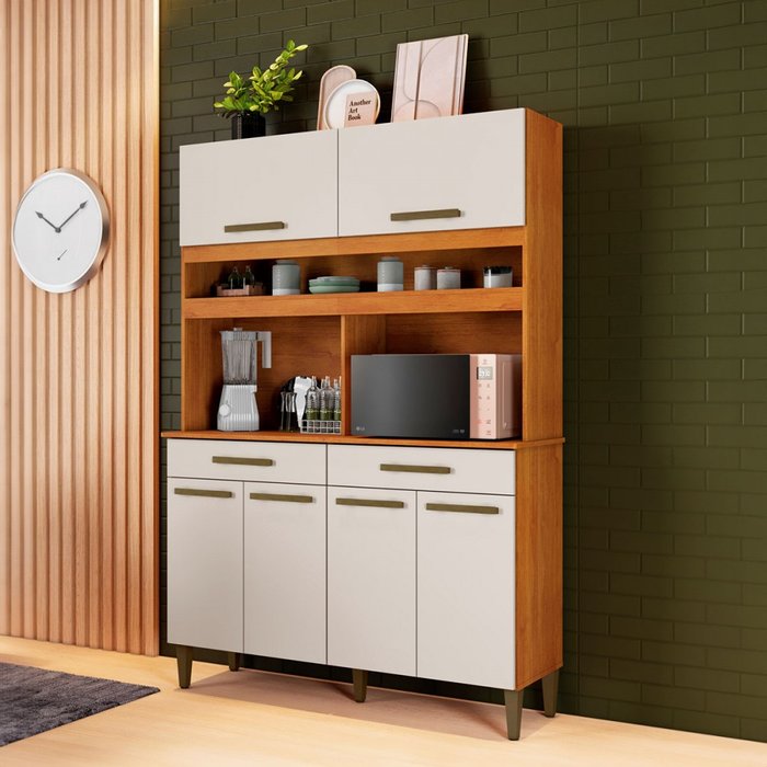 Armário de Cozinha São Paulo 6 Portas 2 Gavetas Nature/off White - Kaiki Móveis
