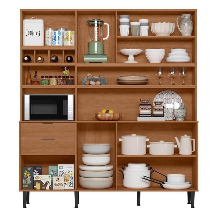 Armário De Cozinha Viena 7 Portas 3 Gavetas E Adega Para 4 Garrafas Jequitibá - Lukaliam