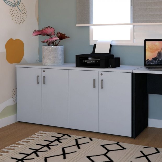 Armário Duplo Baixo para Escritório 4 Portas Corp 25 Preto/Cinza Cristal