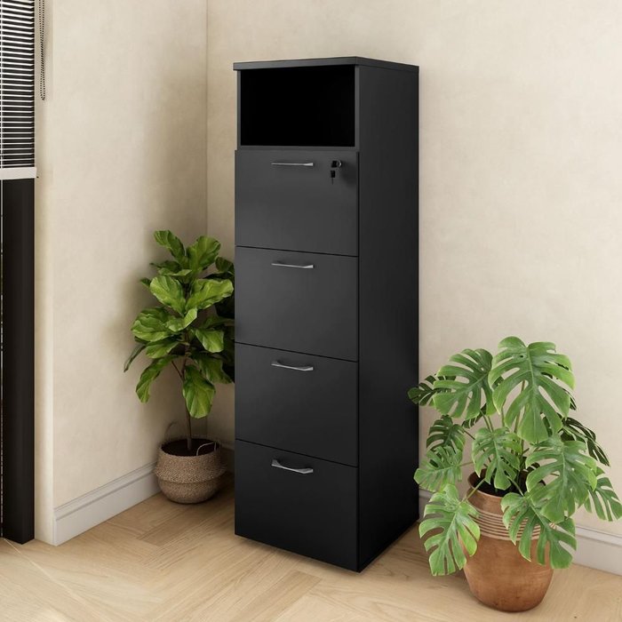 Armário Escritório 4 Gavetas P/ Pastas Suspensas C/ Nicho F5 Cor:preto