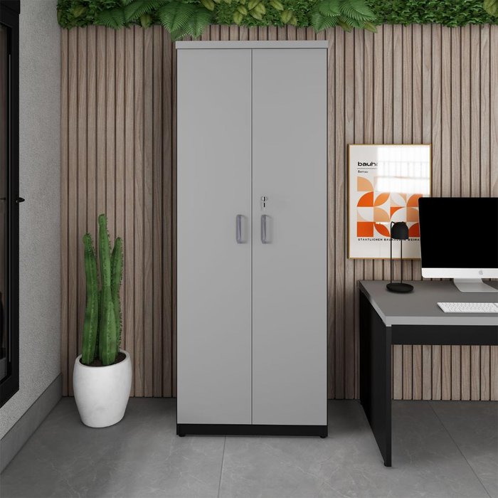 Armário Escritório Extra Alto 80cm X 210cm 2 Portas Chave F5 Cinza Sagrado/Preto