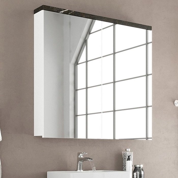 Armário Espelheira de Banheiro 90cm 02 Portas Ref 920 Cewal - Portoro/branco