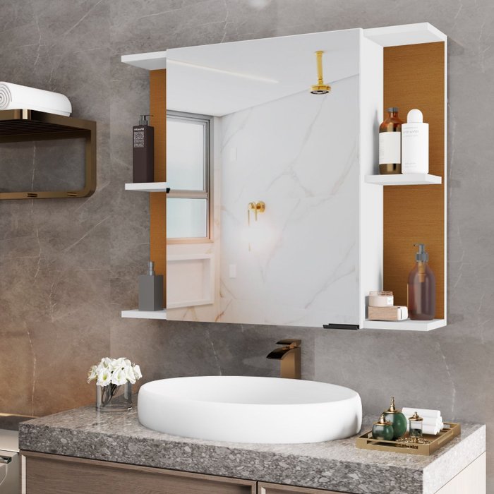 Armário Espelheira para Banheiro 1 Porta Nilo Rede Móveis Branco/Nature