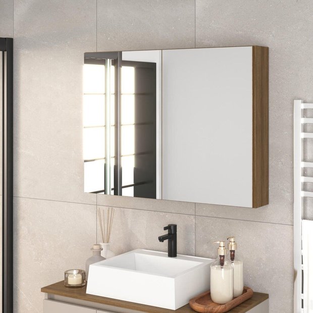 O armário espelheira Aurora é uma solução elegante e funcional para organizar e embelezar seu banheiro! Esta espelheira bem espaçosa possui 2 portas com espelho e duas prateleiras internas práticas para armazenar produtos de higiene pessoal, medicamentos e acessórios de banheiro.