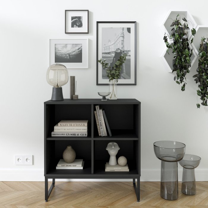 Armário Estante Baixo 74cm com 4 Nichos Concept CabeCasa MadeiraOriginals Preto Trama
