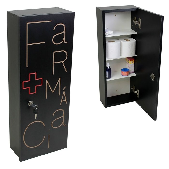 Armário Farmácia de Parede para Medicamentos com Fechadura Preto