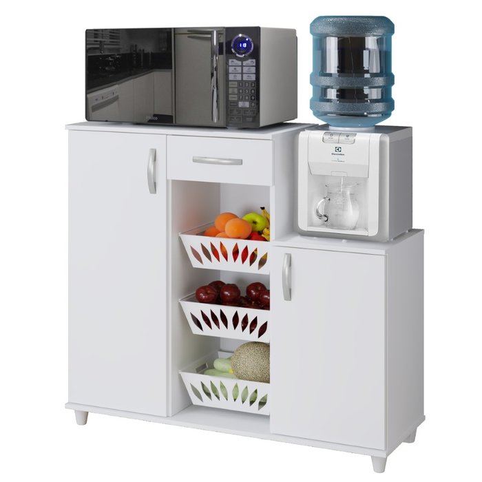 Armário Fruteira 2 Portas 1 Gaveta 310 Cestos Brancos Benetil Branco