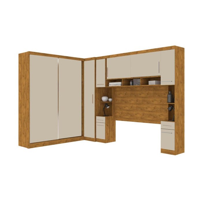 Armário Guarda-Roupa de Canto Casal Milão Modulado Completo Nature Off-White