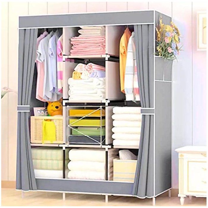 Armário Guarda-Roupa Portátil Dobrável Armazenagem Organizador Cinza