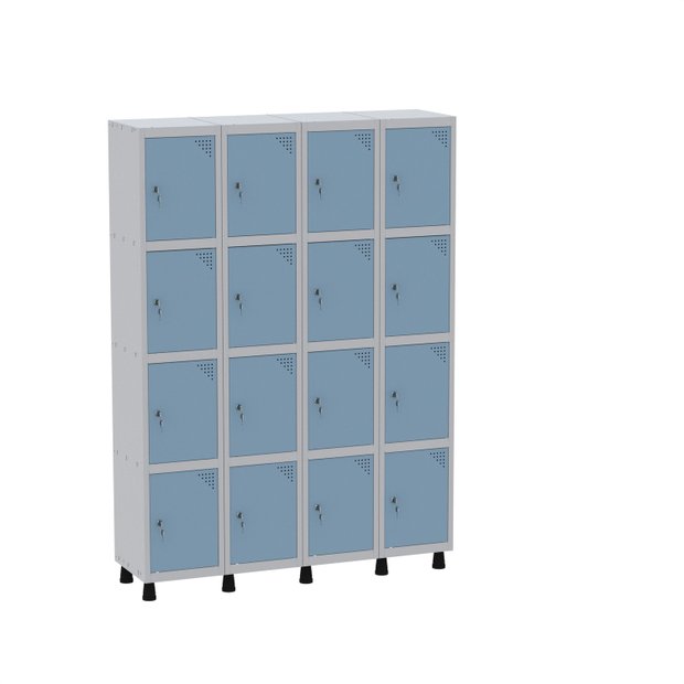 Armário Guarda Volume Locker Roupeiro 16 Portas Aço Grf 504/16 Cinza/Azul Dali