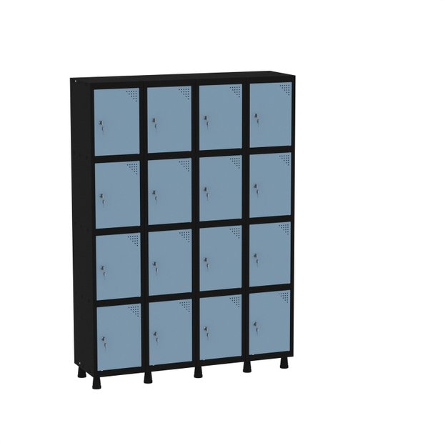 Armário Guarda Volume Locker Roupeiro 16 Portas Aço Grf 504/16 Preto/Azul Dali
