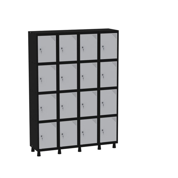 Armário Guarda Volume Locker Roupeiro 16 Portas Aço Grf 504/16 Preto/Cinza