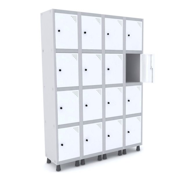 Armário Guarda Volume Locker Roupeiro 16 Portas Aço GRP 504/16 Cinza/Branco