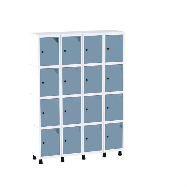 Armário Guarda Volume Locker Roupeiro 16 Portas Aço Grp 504/16 Branco/Azul Dali