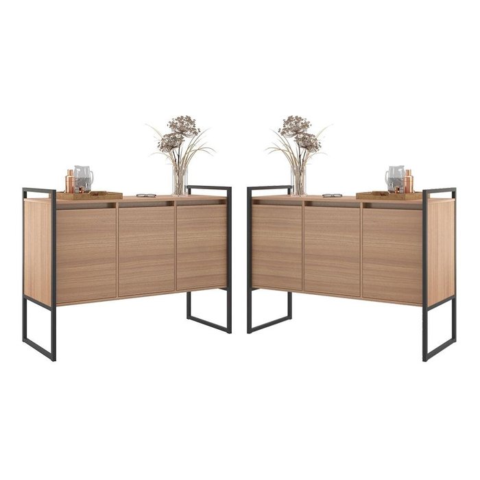 Esse Conjunto de Buffets veio para compor sua sala ou cozinha com seu charme industrial para a renovação do seu ambiente bonito e moderno. BUFFET em MDP PERFEX 15mm com acabamento Bordas em ABS, Tampo Superior, Compartimento com 3 portas Estrutura em Aço 20x20 com Pintura EPOXI nas Cores Preto e Cobre. Dimensões do produto: Altura: 87 cm Largura: 120 cm Comprimento: 41 cm Informações complementares: Material Predominante: MDP PERFEX 15 mm Pés: Sim, industriais. Adega: Não Prateleiras: Sim (1) Cor: Montana. Gavetas: Não Portas: Sim (3). Nichos: Não Porta objetos: SIm Itens Inclusos: 02 Buffet . Kit completo para montagem, manual de instruções para montagem. Garantia: 3 meses contra defeito de fabricação Informações complementares: - Fotos meramente ilustrativas do produto no ambiente. - Os objetos que ambientam as fotos não acompanham o produto; - Verificar descrição e tamanho do produto antes da compra. - Avaliar a mercadoria no ato do recebimento e recusar em caso de divergência ou avarias. - Mantenha as informações de contato e endereço de entrega atualizados para entrarmos em contato caso necessário. - Limpar com flanela ou pano macio seco, não utilizar produtos abrasivos, desengordurantes, álcool ou solvente. Não expor o produto diretamente à luz solar e à umidade. * Sugerimos a contratação de um montador profissional para a montagem do produto. Não nos responsabilizamos por avarias causadas no ato da montagem. * Não nos responsabilizamos pela montagem e desmontagem do produto no ato da entrega e devolução, assim como os custos gerados nestas situações. * A transportadora entregará o produto no andar térreo do endereço de entrega. * Não nos responsabilizamos por subir escadas, corredores e elevadores ou transporte por guincho em apartamentos.