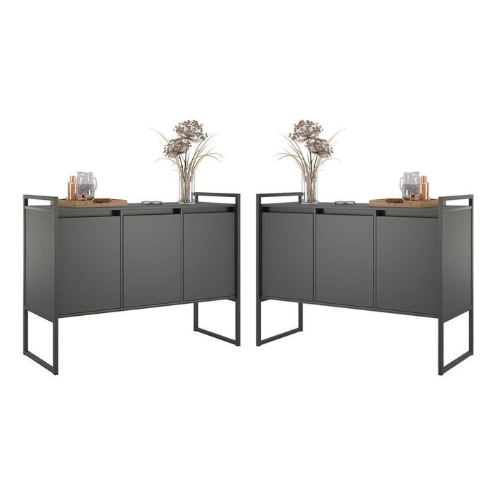 Esse Conjunto de Buffets veio para compor sua sala ou cozinha com seu charme industrial para a renovação do seu ambiente bonito e moderno. BUFFET em MDP PERFEX 15mm com acabamento Bordas em ABS, Tampo Superior, Compartimento com 3 portas Estrutura em Aço 20x20 com Pintura EPOXI nas Cores Preto e Cobre. Dimensões do produto: Altura: 87 cm Largura: 120 cm Comprimento: 41 cm Informações complementares: Material Predominante: MDP PERFEX 15 mm Pés: Sim, industriais. Adega: Não Prateleiras: Sim (1) Cor: Preto Onix. Gavetas: Não Portas: Sim (3). Nichos: Não Porta objetos: SIm Itens Inclusos: 02 Buffet . Kit completo para montagem, manual de instruções para montagem. Garantia: 3 meses contra defeito de fabricação Informações complementares: - Fotos meramente ilustrativas do produto no ambiente. - Os objetos que ambientam as fotos não acompanham o produto; - Verificar descrição e tamanho do produto antes da compra. - Avaliar a mercadoria no ato do recebimento e recusar em caso de divergência ou avarias. - Mantenha as informações de contato e endereço de entrega atualizados para entrarmos em contato caso necessário. - Limpar com flanela ou pano macio seco, não utilizar produtos abrasivos, desengordurantes, álcool ou solvente. Não expor o produto diretamente à luz solar e à umidade. * Sugerimos a contratação de um montador profissional para a montagem do produto. Não nos responsabilizamos por avarias causadas no ato da montagem. * Não nos responsabilizamos pela montagem e desmontagem do produto no ato da entrega e devolução, assim como os custos gerados nestas situações. * A transportadora entregará o produto no andar térreo do endereço de entrega. * Não nos responsabilizamos por subir escadas, corredores e elevadores ou transporte por guincho em apartamentos. ALTURA DO PRODUTO (CM): 87 | ESTADO DE ORIGEM: SP | LARGURA DO PRODUTO (CM): 120 | CORES DO PRODUTO (FILTRO DE CORES): Preto | PESO DO PRODUTO (KG): 29 | COMPRIMENTO DO PRODUTO (CM): 41 | MATERIAL PRINCIPAL: MDF | COR PREDOMINANTE: Preto | QUANTIDADE DE PORTAS: 3 | ALTURA DO PRODUTO COM EMBALAGEM (CM): 14 | LARGURA PRODUTO COM EMBALAGEM (CM): 43 | COMPRIMENTO PRODUTO COM EMBALAGEM (CM): 123 | PESO PRODUTO COM EMBALAGEM (KG): 29 | INSTRUÇÕES/CUIDADOS: Limpar com pano macio e seco, não utilizar produtos abrasivos | PRODUTO PRECISA DE MONTAGEM?: Sim, a montagem é simples mas sugerimos a contratação do nosso serviço de montagem (para os CEPs em que o serviço está disponível) ou de algum profissional experiente de sua preferência | MARCA: Plata | CONTEÚDO DA EMBALAGEM: 2 Buffet | DESCRIÇÃO DO TAMANHO: Altura: 87 cm x Largura: 120 cm x Comprimento: 41 cm | MATERIAL PARA FILTRO: MDF