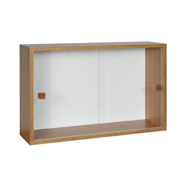 1 Armário Kit 64x18x41 Freijó com Portas de Correr Acrílico e Puxador Montante Natural
