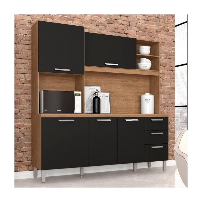 Armário Kit de Cozinha 5 Portas Leda Plus Carv/ Preto - Móveis Arapongas Carvalho/preto Fosco
