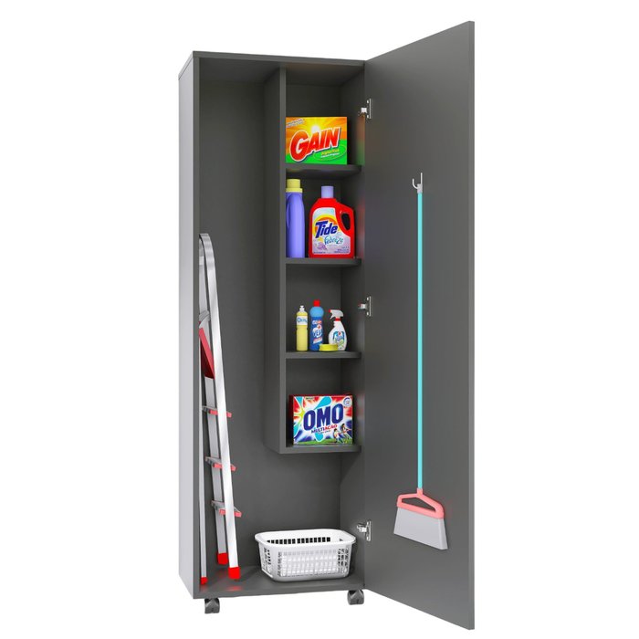 Armário Lavanderia Armazenamento Porta Vassoura 1 Porta Click Armário Multiuso 1 Porta Preto Preto