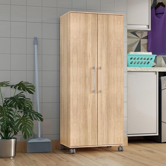 Com 2 portas, 4 prateleiras internas, dobradiças metálicas, puxadores modernos e rodízios faz da Lavanderia Marcela um móvel próprio para pessoas exigentes com organização. Fabricada em MDP de alta qualidade. Suporta pesos de até 7kg em suas prateleiras suficiente para acomodar diversos itens domésticos como detergentes, baldes, sabão em pó, pano de limpeza, esponjas, entre outros. Seu maior diferencial são os rodízios que facilitam a movimentação do produto para limpeza. Além desses detalhes é de fácil montagem