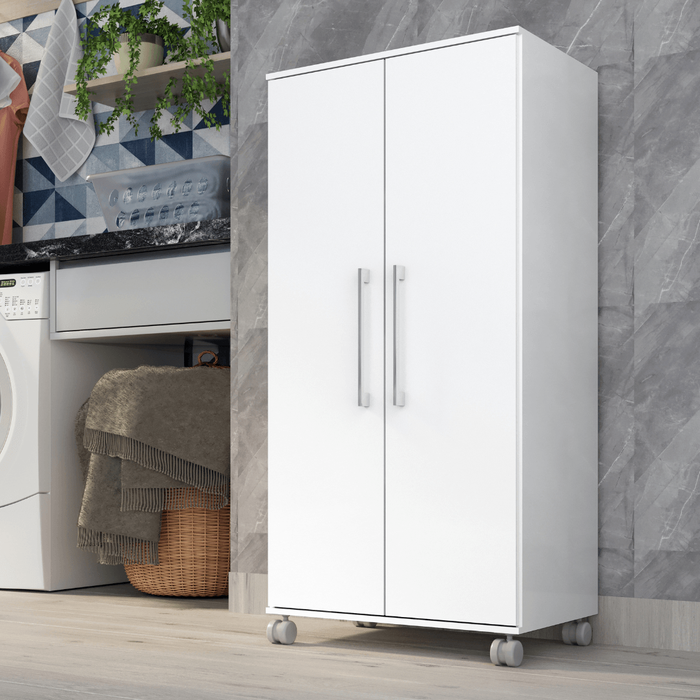 Armario Lavanderia Michele 2 Pts 1,10m com Rodinhas Branco
