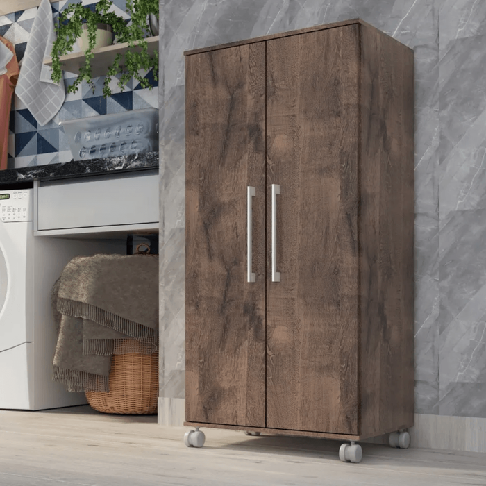 Armario Lavanderia Michele 2 Pts 1,10m com Rodinhas Chocolate Chocolate
