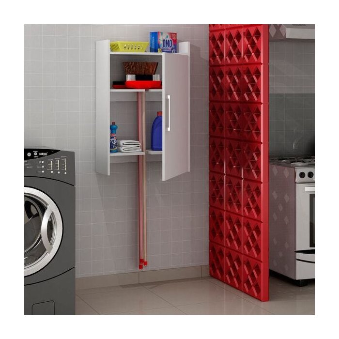 Armário Lavanderia Suspenso Multiuso com Porta Vassoura Clean 38111