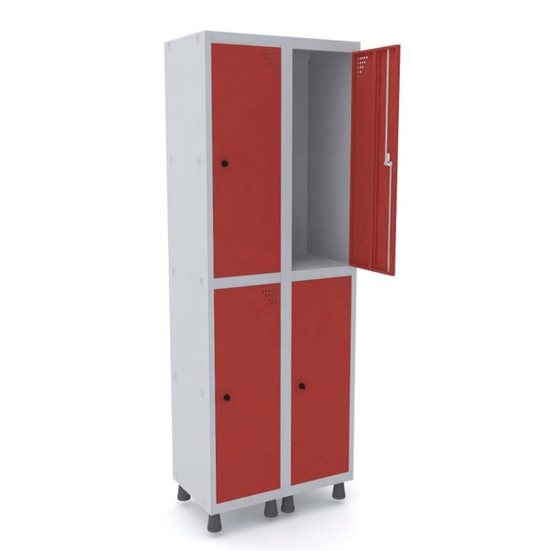 Armário Locker Guarda-Volume 4 Portas Aço Grp 502/4 Vermelho/Cinza