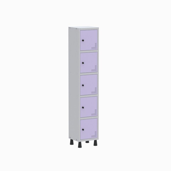 Armário Roupeiro de Aço totalmente montável, dispensa a utilização de parafusos, estrutura em chapas #24 e #26 (0,60mm e 0,45mm) conta com uma porta com estampos circulares em formação triangular para ventilação, sistema de fechamento de varão de 3 pontos, através de pitão para cadeado. Em conformidade com as normas NR17.