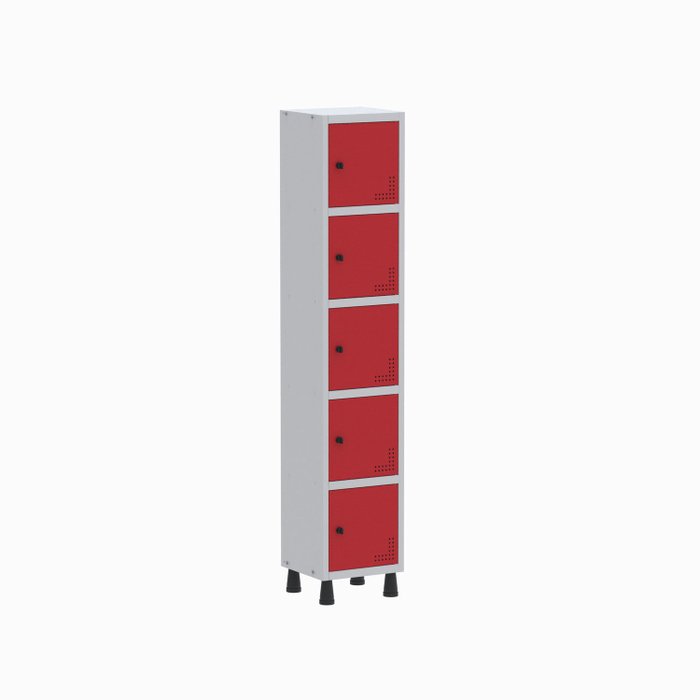 Armário Locker Guarda Volume Aço Light 5 Portas 34,5x179,5cm Cinza/Vermelho