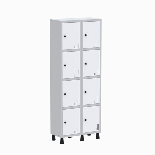 Armário Locker Guarda Volume Aço Light 8 portas 69x179,5cm Cinza/Branco